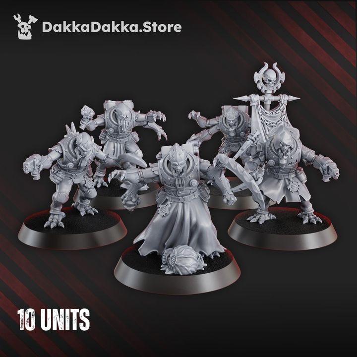 Expand your tabletop army with Cosmic Harvester Witnesses! Suitable for tabletop wargames or role-playing games.